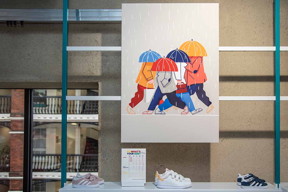 Illustration showcase at Adidas London. Photo by Street Art Atlas
