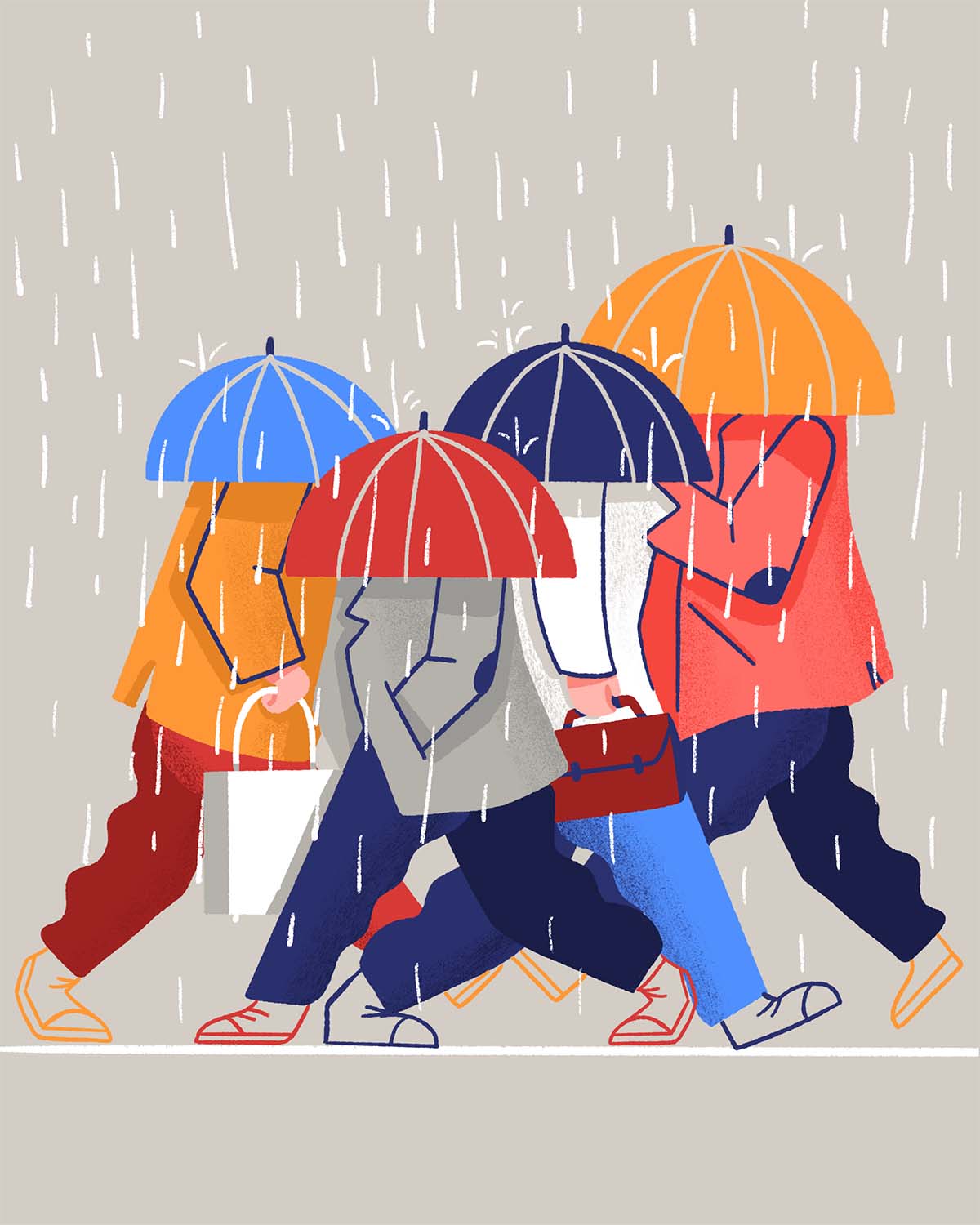 Umbrella heads in the rain illustration